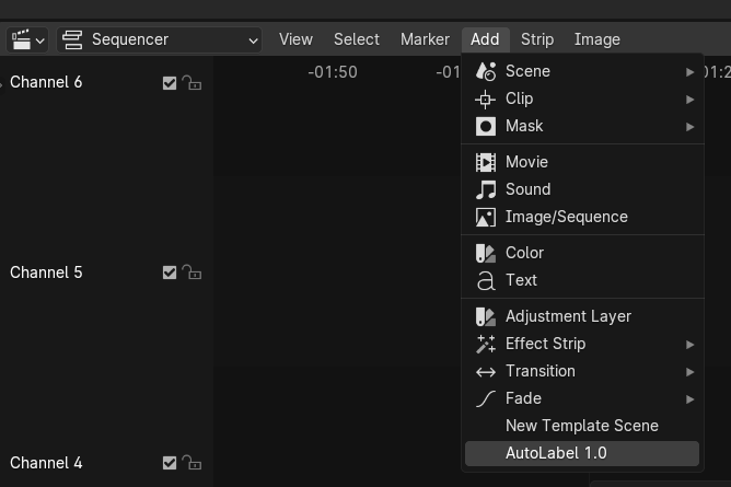 "AutoLabel 1.0" is a tool for Blender that automates the creation of text strips in the Video Sequence Editor. It allows customization of name, prefix, size, position, color, and style of labels. This feature is especially useful in storyboard work, a functionality not natively included in Blender, streamlining video editing workflows and project organization.