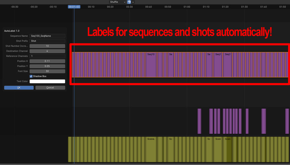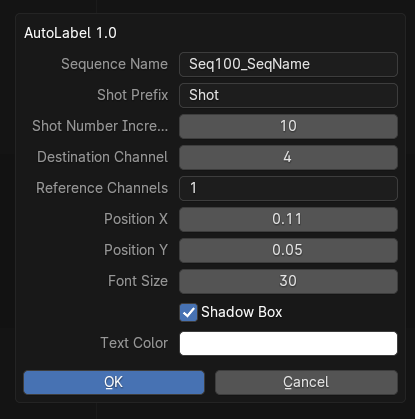 - Sequence Name and Shot Prefix: These will be concatenated to form the complete label.